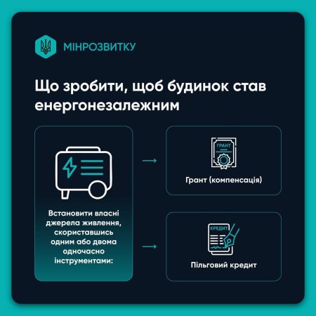 - встановити обладнання для забезпечення роботи будинку під час відключень електроенергії.