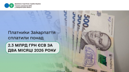 Платники Закарпаття сплатили понад 2,3 млрд грн ЄСВ за два місяці 2026 року