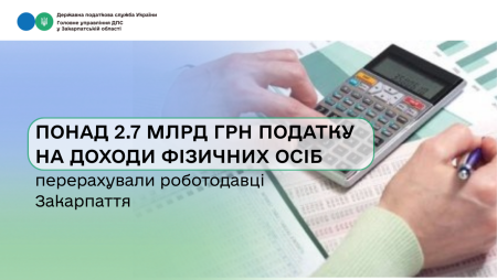 Упродовж січня–лютого 2026 року з доходів працівників Закарпаття податкові агенти утримали та перерахували до зведеного бюджету понад 2 млрд 731 млн грн податку на доходи фізичних осіб.