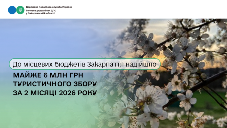 Упродовж 2 місяців 2026 року надходження туристичного збору до місцевих бюджетів Закарпатської області становили 5,9 млн гривень, що на 1,36 млн грн більше, ніж за аналогічний період 2025 року. Позитивна динаміка свідчить про активний розвиток туристичної галузі регіону та зростання ролі туризму у формуванні доходної частини бюджетів територіальних громад.