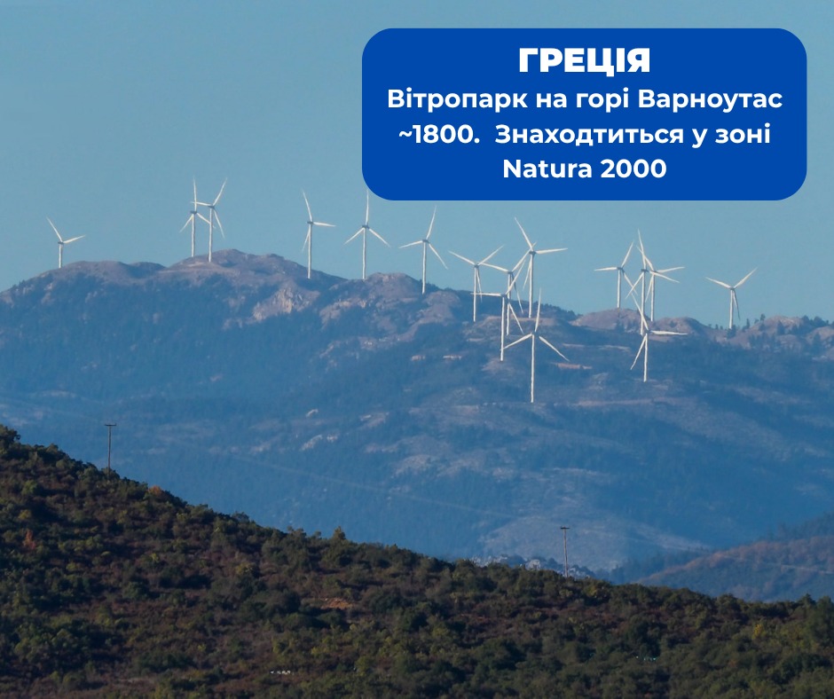 Окремо варто звернути увагу на досвід Греції, де вітроенергетика активно розвивається саме в гірських районах, значна частина яких входить до мережі Natura 2000. Зокрема, вітропарки функціонують у регіоні гори Варноутас (Varnous), на висотах понад 1800 метрів над рівнем моря. Ці території мають природоохоронний статус через наявність рідкісних видів флори і фауни, однак це не стало підставою для повної заборони розвитку енергетики.