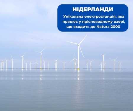 Один із добре документованих прикладів — Windpark Fryslân у Нідерландах. Це — реальний вітропарк із 89 турбінами, що працює з 2021 року в IJsselmeer. Оператор прямо вказує параметри проєкту, а матеріали нідерландського державного агентства RVO свідчать, що проєкт аналізувався в контексті Natura 2000-територій IJsselmeer і Waddenzee, включно з оцінкою впливу на птахів, порогом додаткової смертності, міграційними шляхами та необхідними пом’якшувальними заходами. Окремо для цього проєкту було створено ще й nature reserve — штучний острів і мілководні зони для птахів та риб.