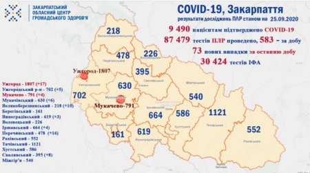 73 випадки COVID-19 виявлено на Закарпатті за добу