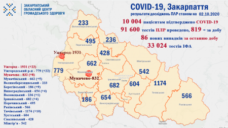 Загалом, 10 004 закарпатцям встановлено діагноз COVID-19, із яких 1018 медики та 561 – діти.
