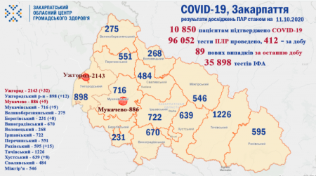 загалом, 10 850 закарпатцям встановлено діагноз COVID-19, із яких 1072 медики та 613 - діти;