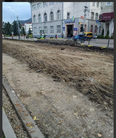 А все через те, що проводиться капітальний ремонт дороги, і не тільки. Зняли попередній шар асфальту, під яким була бруківка, яку також демотували.