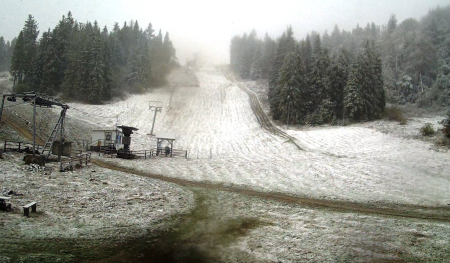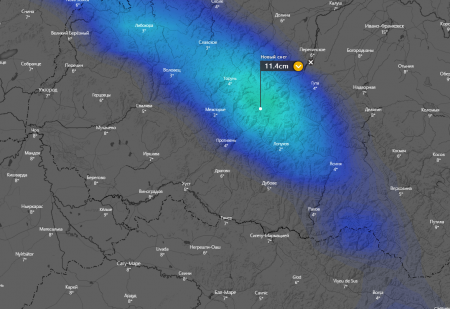 Непогода,яка прийшла на Закарпаття, принесла суттєве похолодання в гірських районах області випав перший сніг за даними метеосупутників погоди наразі він продовжує падати.