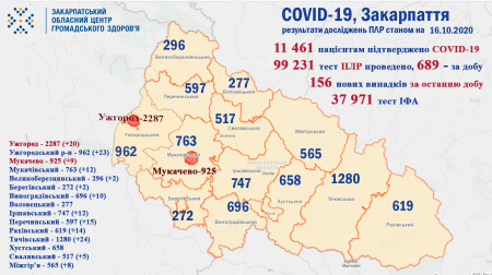 Загалом, 11 461 закарпатцям встановлено діагноз COVID-19, із яких 1108 медики та 647 – діти.