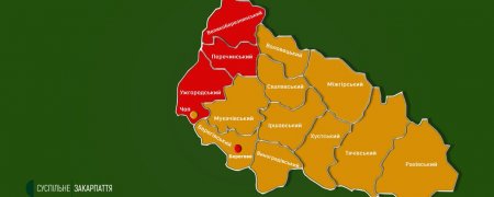 До "зеленої" та "жовтої" зони не потрапив жоден район чи місто Закарпатської області. До "помаранчевої" зони потрапили міста Мукачево, Хуст та Чоп, Берегівський, Виноградівський, Воловецький, Іршанський, Міжгірський, Мукачівський, Рахівський, Свалявський, Тячівський та Хустський райони Закарпатської області.