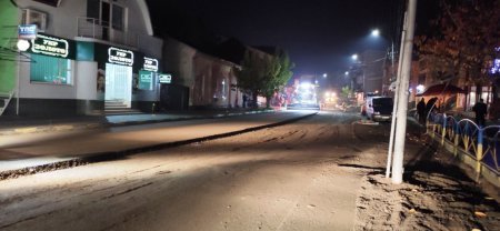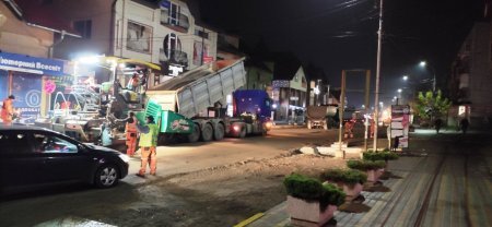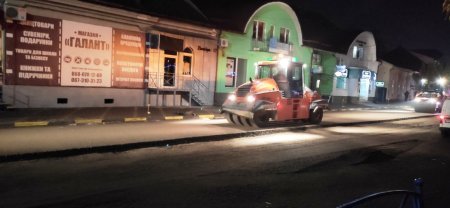 Дорогу в Тячеві ремонтують навіть вночі (фото)