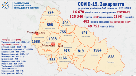 402 ВИПАДКИ за добу коронавіруса на Закарпатті та 4 пацієнтів ПОМЕРЛО