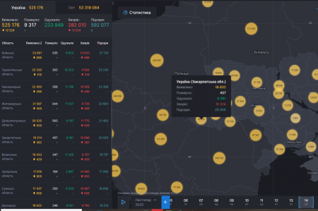 За даними МОЗ України за минулу добу на Закарпатті, підтверджено 382 випадки COVID-19 більше 20 тисяч чекають результатів тестів пять людей померло.