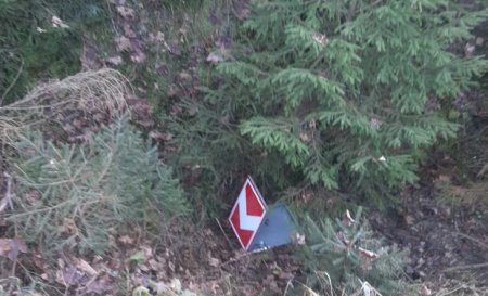 Знаки "Небезпечний поворот" було відбито, погнуто і викинуто в кювет.