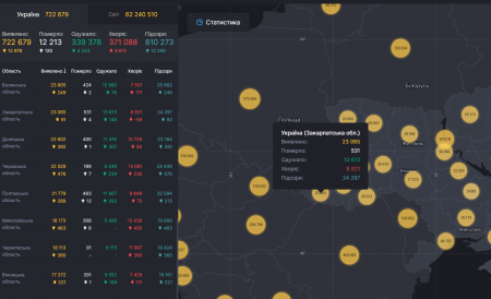 Загалом за час пандемії в краї виявлено 23065 випадки,531 людина померла,24297 чекають результатів тестів.
