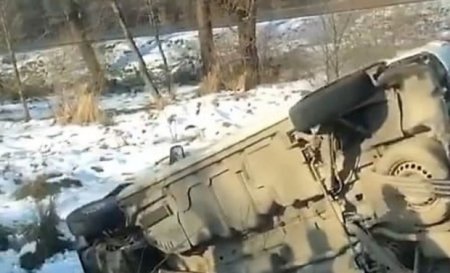 У свою чергу, мікроавтобус перекинувся на бік.