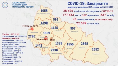 За минулу добу у 76 пацієнтів підтверджено коронавірус методом ПЛР. З них – 6 медиків.