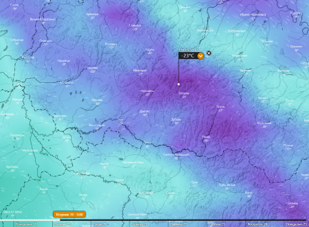 За даними автоматичних метеостанцій минулої ночі температура повітря на Закарпатті, опустилася нижче -20 морозу. Така морозна погода протримається в області,як мінімум до середи, піком низьких температур буде ніч з понеділка на вівторок до -11 -23 морозу. В наступні вихідні по всій території області пройдуть опади у вигляді снігу,вітер помірний,вологість близько 80%.