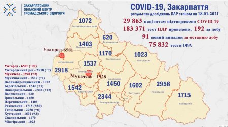 Ситуація щодо COVID-19 на Закарпатті станом на 18 cічня