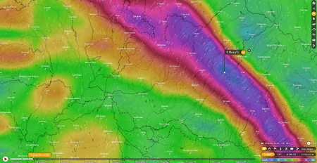 За даними метеосупутників погоди та прогнозами синоптиків на Закарпатті, погіршення погодних умов у високогір’ях очікується штормовий вітер більше 90 кілометрів в годину.