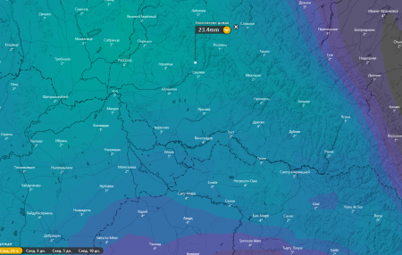 За даними метеосупутників погоди дощ продовжиться до середини дня в гірських районах може випасти більше 20-ти міліметрів опадів.