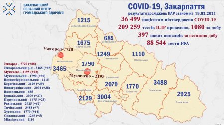 від початку пандемії 36 499 закарпатцям встановлено діагноз COVID-19, із яких 2660 – медики та 1862 діти ;