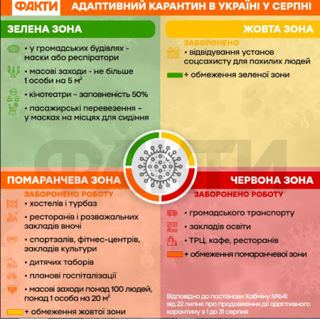 Загалом, карантинних зон буде чотири: зелена, жовта, помаранчева і червона.