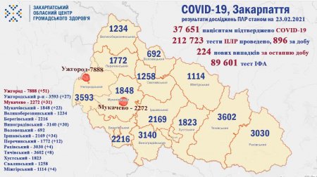 Загалом, 37 651 закарпатцям встановлено діагноз COVID-19, із яких 2 705 медики та 1933 – діти.