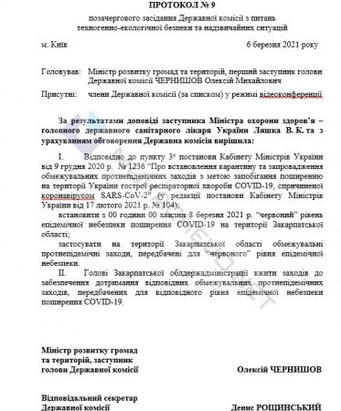 Згідно з рішенням Державної комісії з ТЕ та НС з 00 години 00 хвилин 8 березня 2021 р. на території Закарпатської області встановлюється “червоний” рівень епідемічної небезпеки поширення COVID-19.