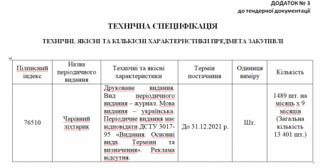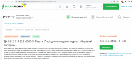 Тендер на закупівлю дитячого журналі «Чарівний ліхтарик» управління оголосило вчора, 15 березня 2021 року, на Prozorro.