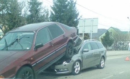Через ДТП у Хусті автомобіль опинився на капоті іншого автомобіля (фото)