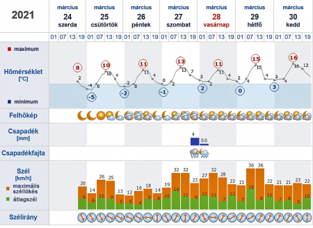 На скріншоті прогноз погоди угорських синоптиків для низинних районів.