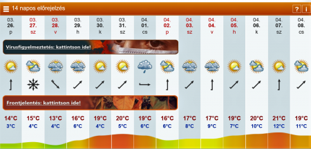На скріншоті довгостроковий прогноз погоди угорських синоптиків для низинних територій.