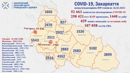 - загалом, 52 663 закарпатцям встановлено діагноз COVID-19, із яких 3303 - медики та 2624- діти;