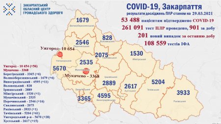 від початку пандемії 53 488 закарпатцям встановлено діагноз COVID-19, із яких 3330 – медики та 2655- діти ;