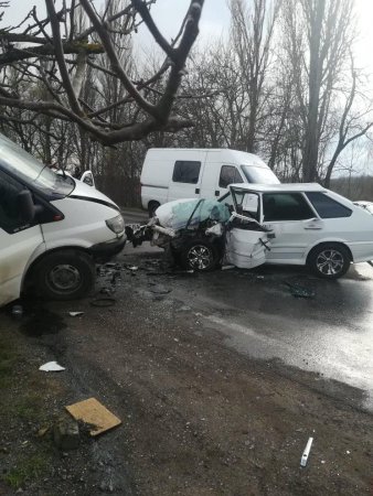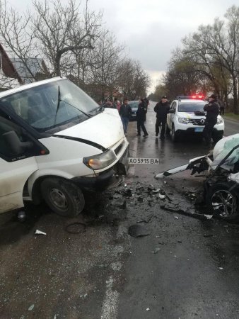 В лобовому зіткненні зійшлися мікроавтобус та автомобіль «ВАЗ», наразі наслідки аварії не відомі. Фото-Attila Nagy.