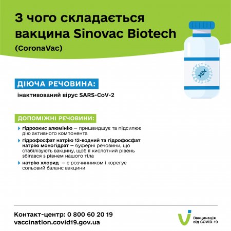 “Важливо знати склад, щоб уникнути можливої алергічної реакції після щеплення. Якщо ви маєте підозру, що у вас можете бути алергічна реакція, обов’язково зверніться до вашого сімейного лікаря чи терапевта найближчої лікарні”, – зазначають у МОЗ.