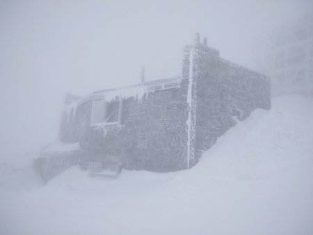 Станом на 08:00 16.04.2021 на г. Піп Іван Чорногірський хмарно, видимість обмежена до 30 м. Вітер південно-західній 12-13 м/с. Хуртовина. Падає дрібний сніг.