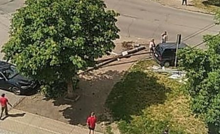 Сьогодні в Ужгороді на перетині вулиць Грушевського та 8 Березня автомобіль зніс електроопору.