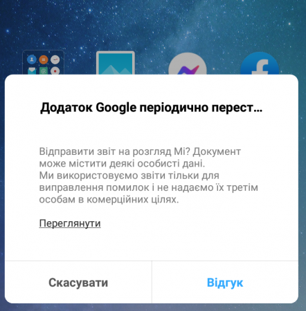 Закарпатці також скаржаться на роботу Google. На телефоні увесь ранок вибиває таке повідомлення: