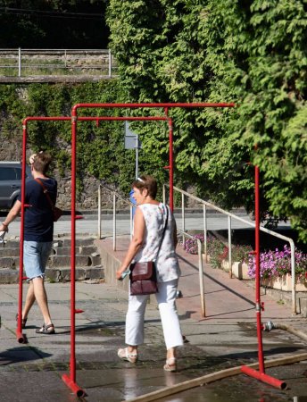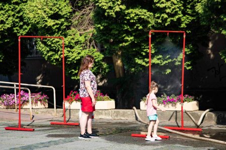Це зроблено у нашому місті вперше. Прохолодна завіса, через яку можна пройти, щоб охолодитися, освіжитися, діятиме у ці спекотні дні щодня з 14 до 19 години.
