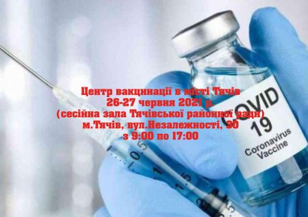 26-27 червня 2021 року з 9:00 по 17:00 год в сесійній залі Тячівської районної ради (м.Тячів, вул.Незалежності, 30) працюватиме один із шести Центрів масової вакцинації населення в Закарпатській області