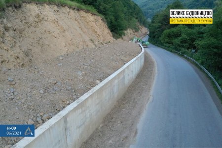 Загалом уздовж маршруту Н-09 вже влаштували понад два кілометри підпірних стінок. Водночас у 2020 р. на цьому автошляху звели найдовшу низову стінку в Україні: її довжина склала 1,6 км, висота – 4-5 м.