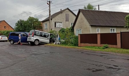 Зіткнулися два мікроавтобуси. Один з водіїв на білому мікроавтобусі, здійснив маневр та хотів повернути, інших на синьому просто в нього в'їхав.