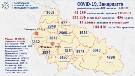 Загалом, 62 289 закарпатцям встановлено діагноз COVID-19, із них 3585 – медичні працівники, 3107 – діти.