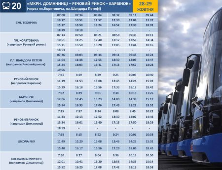 До Дня пам'яті їздитимуть додаткові автобуси до кладовища "Барвінок". Графік руху автобуса №20 на 28-29 жовтня.
