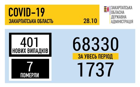 Ситуація щодо COVID-19 на Закарпатті станом на 9:00 1 листопада: