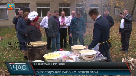 Тай власне тим, що нині 125 річний палац використовують з користю.Відвідали ліцей. Кабінети у яких навчаються учні. Згодом поважні гості відправилися не за стіл переговорів, а у задній двір школи. Прийшли сюди – варити гомболевеш.Цибуля, морква, гриби, паприка, сало, сир, а ще вершки та масло. Розклали вогнище і екс міністр приступив до готування.