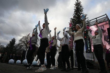Урочистому запалюванню новорічних вогнів передувало театралізоване дійство, влаштоване акторами Закарпатського академічного обласного театру ляльок та вихованцями Ужгородського інституту культури і мистецтв, зі Святим Миколаєм, янголами та іншими персонажами.