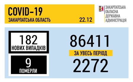 Ситуація щодо COVID-19 на Закарпатті станом на 9:00 22 грудня: