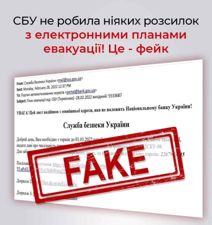 Імейли нібито від імені СБУ про електронні плани евакуації – це ФЕЙК!